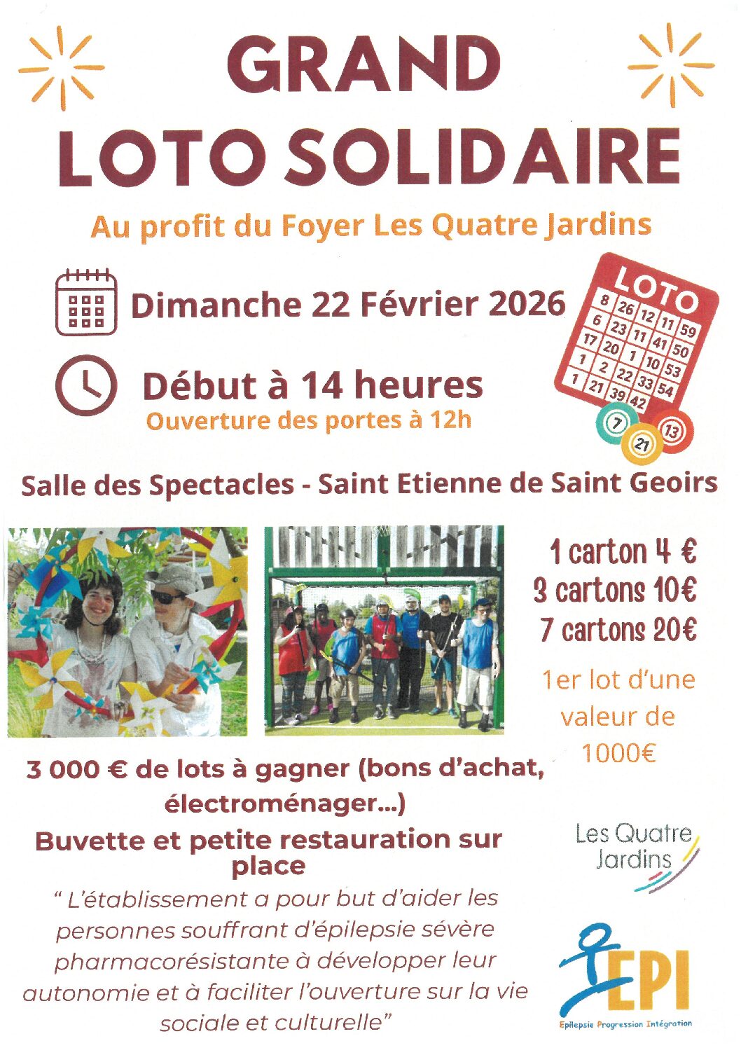 Première édition du grand loto solidaire organisé par l'association "EPI". Ouverture des portes à 12h avec petite restauration sur place... VENEZ NOMBREUX...